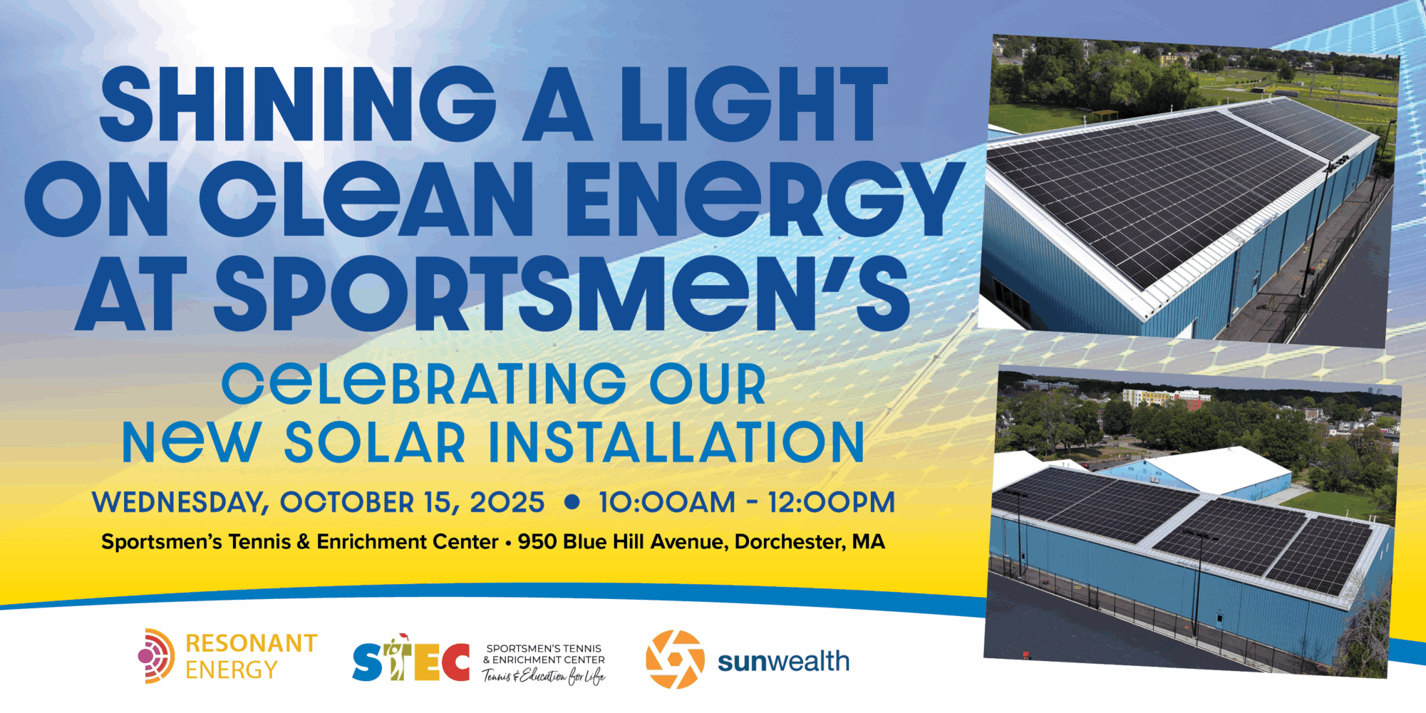 Boston, MA – Sportsmen’s Tennis & Enrichment Center, in partnership with Resonant Energy and Sunwealth, has installed a new rooftop solar array, part of a multi-faceted expansion of its facilities along the Blue Hill Corridor. The project will be celebrated at Shining a Light on Clean Energy at Sportsmen’s, a community celebration and ribbon-cutting on October 15, 2025, from 10:00 a.m. to noon. The event, held during National Clean Energy Action Month, will feature remarks from community leaders and clean energy partners on the impact of renewable energy on Boston neighborhoods.